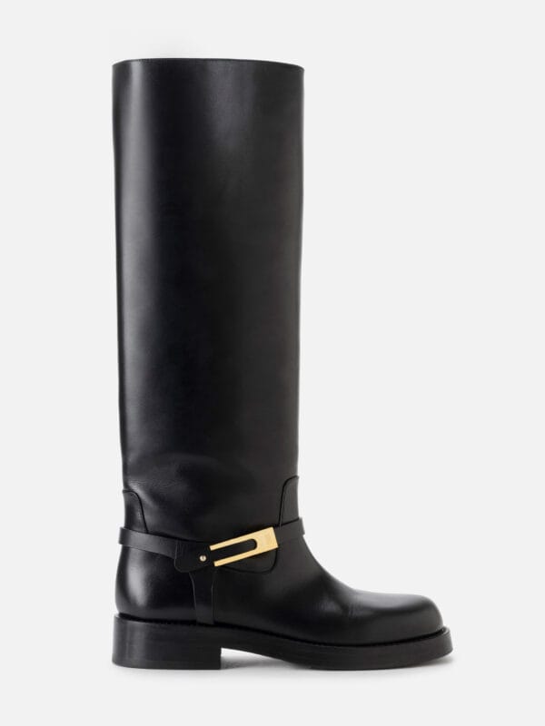 Leather boots with jewel buckle